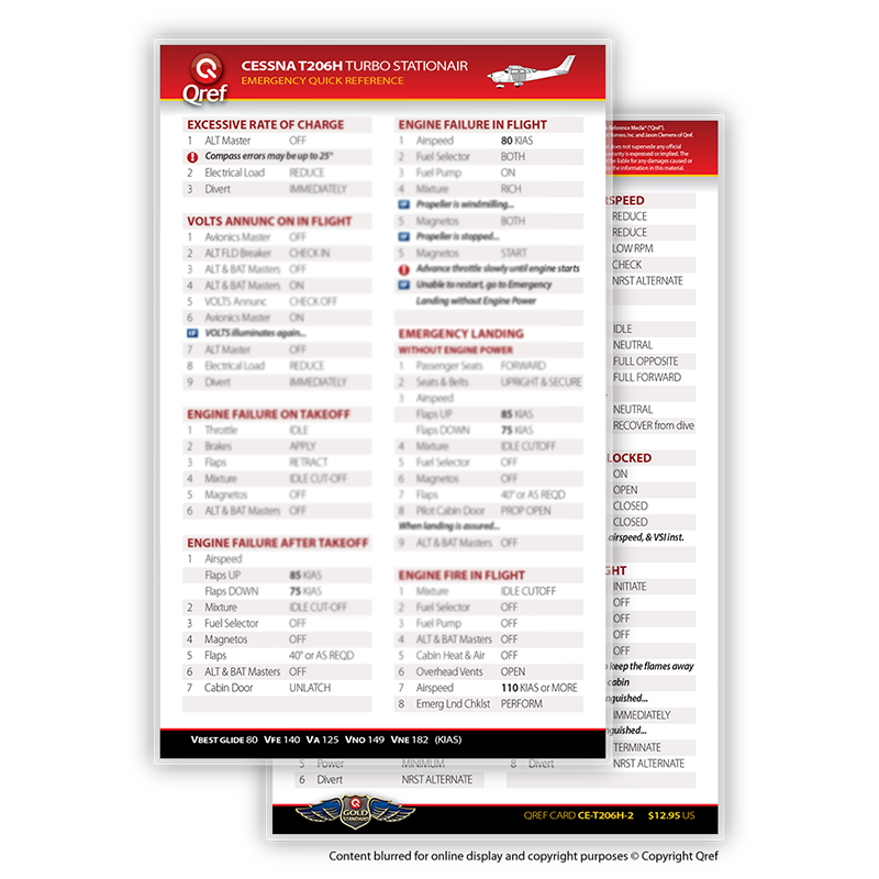 | Cessna Turbo 206H Qref Card | 13-15642 |