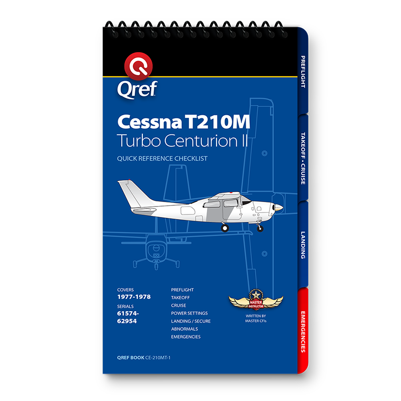 Qref BooksTopics Covered: Preflight, Takeoff/Cruise, Landing, Comprehensive Abnormals and Emergencies, V-speed list, cruise performance chart Get the most accurate, reliable aircraft checklist on the market with a Qref checklist. The procedures cover every aspect of flight, from preflight through takeoff, cruise, landing, and a comprehensive emergencies/abnormals section. Emergencies are arranged by system, meaning no more digging through pages to find the right section. Qref’s trademark is creating checklists that are easy for pilots to use. A major difference in aircraft checklists between Qref and others is the level of experience and expertise that go into every procedure. The Qref team of Master CFIs have over four decades of combined active flight instruction and flying experience at all levels of industry, with instruction and flight time in this aircraft. Further, they have taken advantage of the past 20 years of checklist design research. Qref’s team incorporates industry-best practices into these checklists and forthcoming publications. They not only create checklists, they use them in daily instruction and flying. Qref checklist design features a larger, more readable font, comprehensive procedures sectioned into tabs loaded with useful reference and conversions, and non-glare laminated pages. A complete table of contents makes finding the exact procedure quick. Find out for yourself why Qref aircraft checklists are fast becoming the Gold Standard in aviation. Qref CardsTopics Covered: Preflight, Takeoff/Cruise, Landing, Abnormals and Emergencies, V-speed list 2-card set: one for standard procedures, one for abnormals and emergencies. Q'Cards are designed for pilots who are already familiar with the aircraft but need an everyday checklist to keep relevant procedures at their fingertips. 5" x 9" (12.7 cm x 22.8 cm), the prefect size to fit on a yoke mount or kneeboard. Indestructible proprietary 10-mil laminate with non-glare, UV protective treatment means these checklists will withstand years of use. No other checklist has this! A major difference in aircraft checklists between Qref and others is the level of experience and expertise that go into every procedure. The Qref team of Master CFIs have over four decades of combined active flight instruction and flying experience at all levels of industry, with instruction and flight time in this aircraft. Further, they have taken advantage of the past 20 years of checklist design research. Qref’s team incorporates industry-best practices into these checklists and forthcoming publications. They not only create checklists, they use them in daily instruction and flying. Find out for yourself why Qref aircraft checklists are fast becoming the Gold Standard in aviation. |