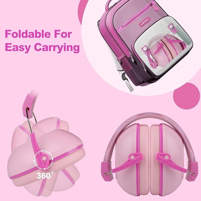 Durable & Comfort: Noise cancelling headphones for kids with upholstered design will keep safety while do hearing protection. Kids ear protection noise cancelling headphones with widely padded headband and soft ear pads make sure kids' ear protection. The 360° rotatable cups design gives a more snug fit. Tested and Certified: Our noise-canceling earmuffs for children's hearing protection are fully tested and certified, with an acoustic attenuation of up to 28 dB, effectively reducing noise and protecting children's hearing. Noise-canceling earmuffs for children are certified to ANSI S3.19 and CE EN 352-1 standards. Multi-age protection: Ear muffs for kids is suitable for children aged 3-16. Toddlers, children, and teens wear it for reading, playing, learning, etc., and train your child's attention during these processes. Foldable & Easy To Carry Design: Noise-canceling earmuffs fold up nicely for easy carrying and fit into a backpack or travel bag, taking up very little space. It is the first choice for children when traveling or playing. Our earmuffs can effectively protect your hearing, you can buy with confidence. Please Note: Noise Reduction Earmuffs For Kids Do Not Completely Block Out Noise. Scientific Studies Have Shown That a Noise Reduction Level Of Around 28db Is The Safest For Children, Too Much Noise Reduction Can Affect Children's Hearing And Also Cause Crushing Of The Child's Head. |