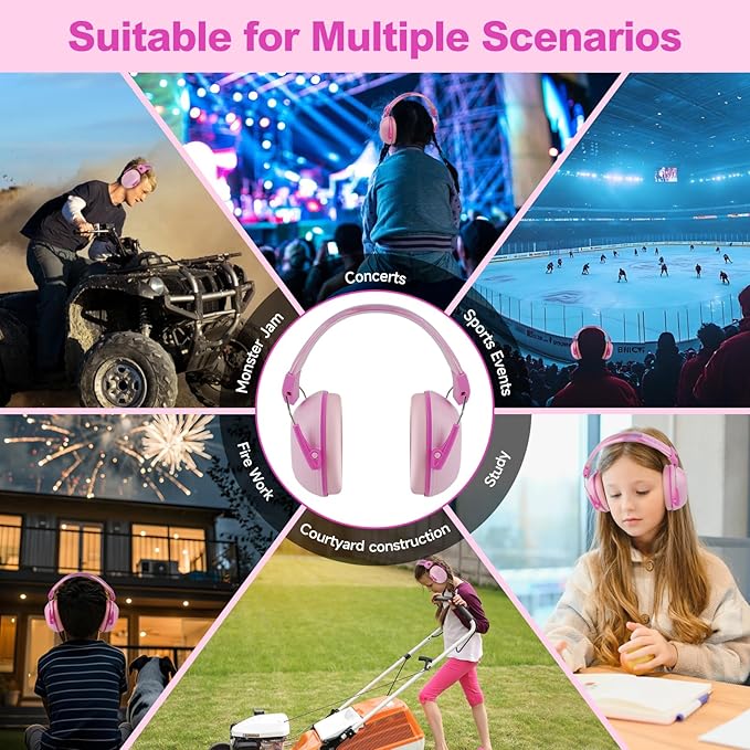 Excellent Noise Canceling Perfromance: Kids Noise canceling headphones have an ultra-high rated SNR 28dB.The kids ear muffs which are designed for children with autism and hearing sensitivity, reduce noise to a safe level. The child ear protectors provide the most reliable safety by perfectly blocking out noise from monster truck shows, concerts, fireworks, traveling, sporting events, yard work, and more.