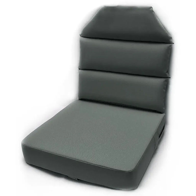 An attractive, quality built folding seat cushion that has a 15" x 15" x 2" bottom, and 14.5" x 14.5" x 2" tufted back with tapered top. Its cockpit friendly compact design has a small Velcro strap for folding, and a simple loop strap for carrying. The fire-resistant foam was carefully selected to maintain adequate height under body weight and G-forces, while still maintaining comfort. The outer material is a 600 denier, liquid repellent nylon.