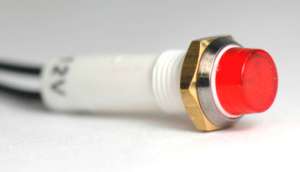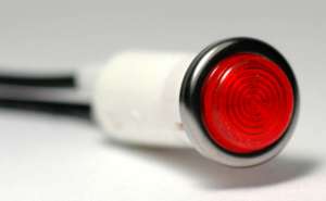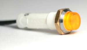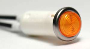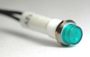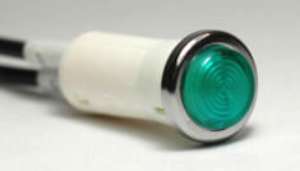 Dash light non-replaceable lamps (5" wire leads). 1/2" and 5/32" sizes available. Colors include Red, Green, and Amber. 1/2" Mounting Hole Specs