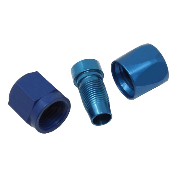 Quality fittings used the 311-2D fittings on Stratoflex 193-2 hose. There do not appear to be any mandrels for 1/8 ID hose so a piece of nominal 1/8 rod was inserted into the hose. Then a 37 degree bulkhead fitting was screwed into the swivel hex nut so as to tighten against the 37 degree insert so all rotated together to reverse screw the hose into the insert.