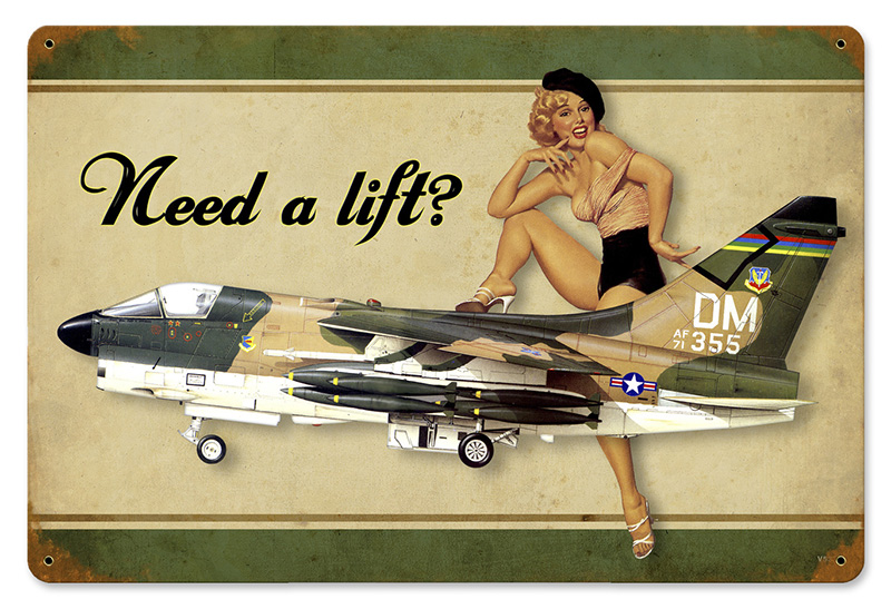 This Need A Lift Corsair vintage metal sign measures approximately 18-inches by 12-inches. Unlike most tin signs, they design and make their signs in the United States using 24 gauge American steel and a process known as sublimation, where the image is baked into a powder coating for a durable and long lasting finish. This sign is drilled and riveted for easy hanging. |