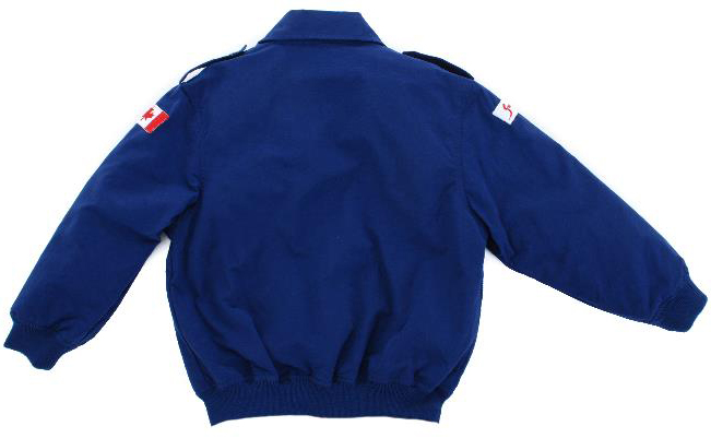 Does your Aviator want to be on the Canadian Snowbirds Demonstration Team? This lightweight jacket for infants and children features three embroidered patches (a Snowbirds Crest, Snowbirds Logo Script and Canadian Flag). Jacket can be make-believe/play. This jacket has two slash pockets, left and right and shoulder epaulets, and a full front zipper. It is the perfect weight for spring and early fall, and is shown below. This jacket is machine washable. |