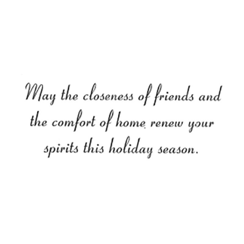 Introducing the Premium Collection from Velocity. These original designs are printed on the highest quality, coated cover stock you can find, and will stand out to anyone receiving them. Twice as heavy as store bought cards, the Premium Collection comes with a UV coating to make the color really pop. No extra postage is needed. Inscription: MAY THE CLOSENESS OF FRIENDS AND THE COMFORT OF A HOME RENEW YOUR SPIRITS THIS HOLIDAY SEASON. 12 Greeting cards & envelopes included in easy to store box |