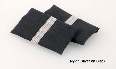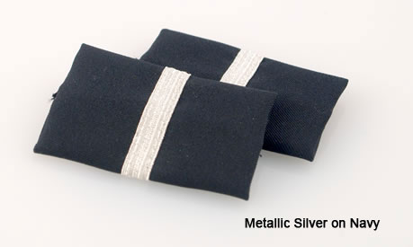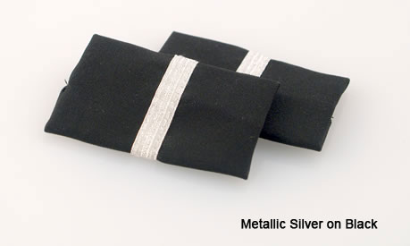 The board for these epaulets are made of 100% Polyester and the finest braided bars available. Epaulets are available with a Black or Navy base and a Metallic Gold, Metallic Silver, Nylon Gold, Nylon Silver, or nylon white stripe. Price per pair. |