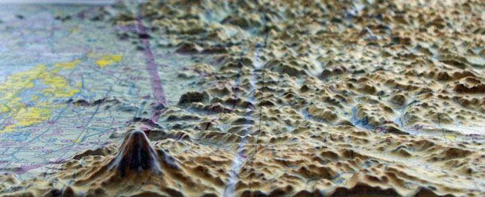This 3D sectional wall chart is precisely molded into the true shape of Seattle and northwest Washington terrain. This unique chart covers from the Olympic Peninsula and Pacific Ocean to Mt. Rainier and the Northern Cascades -- 238 miles of dramatic topography. Displayed on a wall of a home, office or hangar, these 3D charts make for a striking display of the mountainous terrain and how the hazardous high terrain relates to aviation/airspace. Northwest mountain pilots will study this chart again and again to review past flights or plan new ones. Made with a digital inkjet printing process on a rigid plastic sheet, which is then molded to a precise terrain model. |