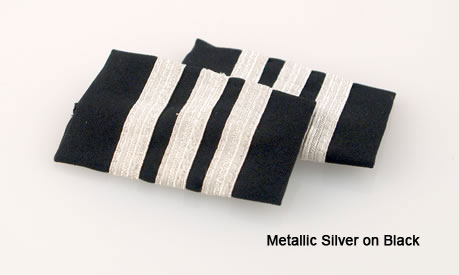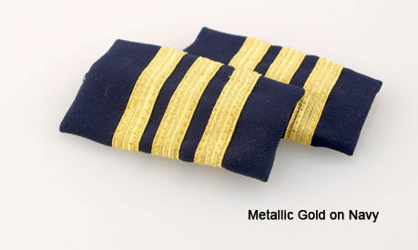 The board for these epaulets are made of 100% Polyester and the finest braided bars available. Epaulets are available with a Black or Navy base and Metallic Gold, Metallic Silver, Nylon Gold, Nylon Silver, or Nylon White stripes. Price per pair. Measure approximately 3" x 2 1/4" with a 1/4" taper. Sold in pairs and hand made in the USA! |