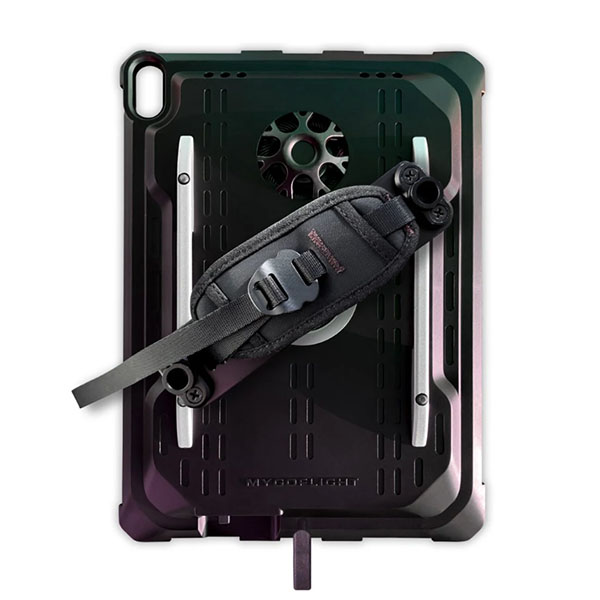 • Secure your iPad on the go! Our iPad Hand Mount allows you to grip your iPad or tablet while maintaining a full range of motion. The secure, quick release, and adjustable strap pairs with a solid aluminum base. Included is an adjustable, shock absorbing neck strap that quickly clicks in or out to secure the iPad from a fall, and a hand strap that locks into MyGoFlight's iPad Sport Case, Cool Case, & or Cradle. The Hand Mount can be used with or without the neck strap. No dropping. One hand operation. Ultimate security. Whether for aviation, construction, outdoor order processing, field work, travel or play, the Hand Mount is a single solution for a range of applications. Included in the box: Hand Mount with Cushion hand piece and elastic, adjustable strap. Compatible with any tablet from 7 inches to 11 inches