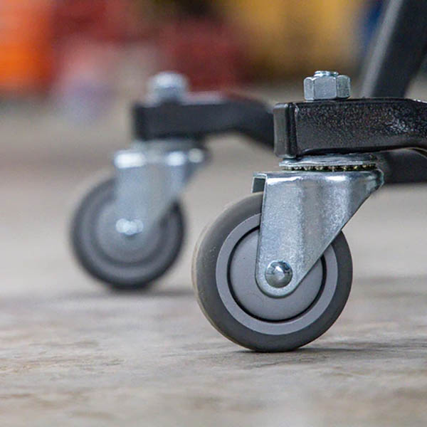 3” x 1” ball-bearing caster with TPR (rubber) tread rated at 120 lb. dynamic load per caster. Replacement for original casters on AeroCreeper.