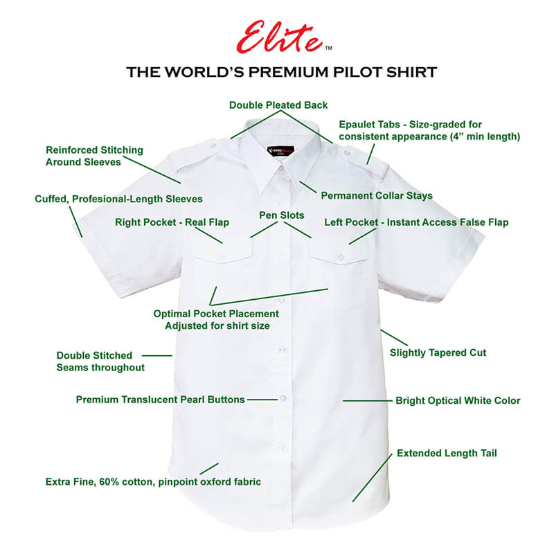 The ELITE Pilot shirt is designed to be the most comfortable, professional looking, finest choice available. Its dress-shirt, designer quality fabric, construction and fit, are immediately apparent. Compare the ELITE to dress shirts costing far more, and to any other pilot shirt. |
