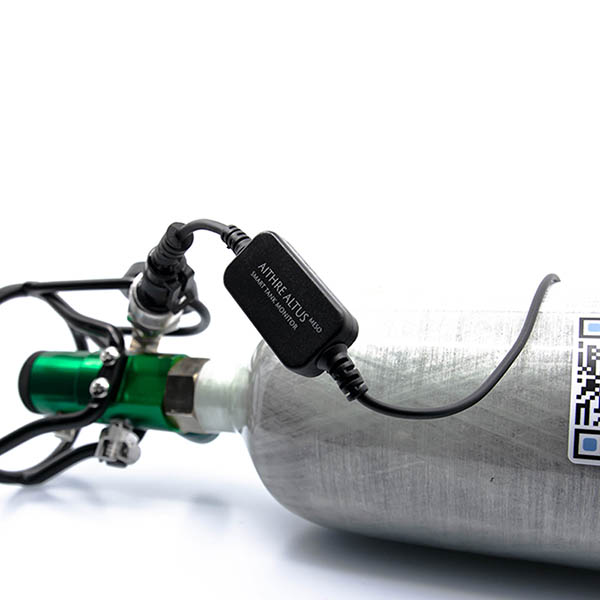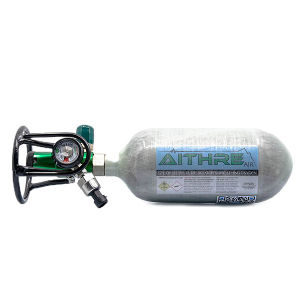 The Aithre personal oxygen bottle is constructed from lightweight composite carbon fiber with an aluminum lining and is designed for private aviation. Offering a 2000 PSI working pressure, simple on-off gauge, and an adjustable flow regulator, this bottle is ideal for pilots in private GA aircraft with flow rates as high as 25LPM.