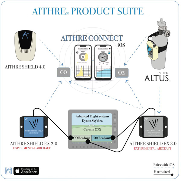 The Aithre Shield EX 3.0 is the first behind-the-panel device that puts carbon monoxide readings AND tank PSI from your Aithre Altus portable oxygen tank gauge directly on your Dynon SkyView, MGL, Garmin G3X, and Advanced Flight Avionics.