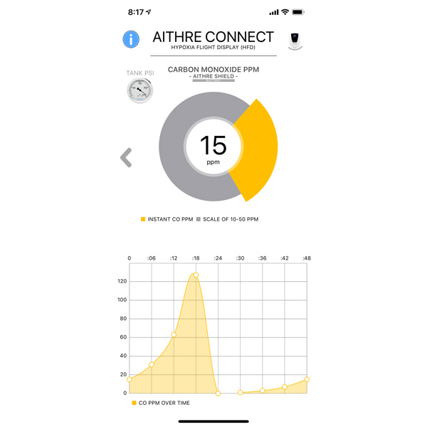 Wirelessly retrieves tank psi data from the Aithre Altus to allow portable oxygen tank pressure to be provided to your avionics along with carbon monoxide data