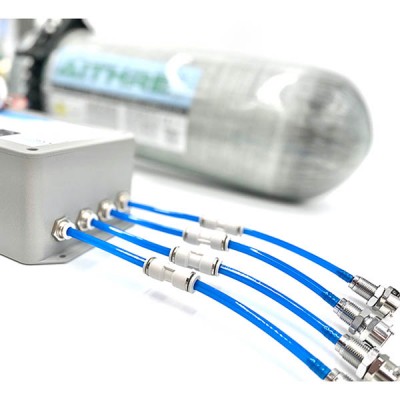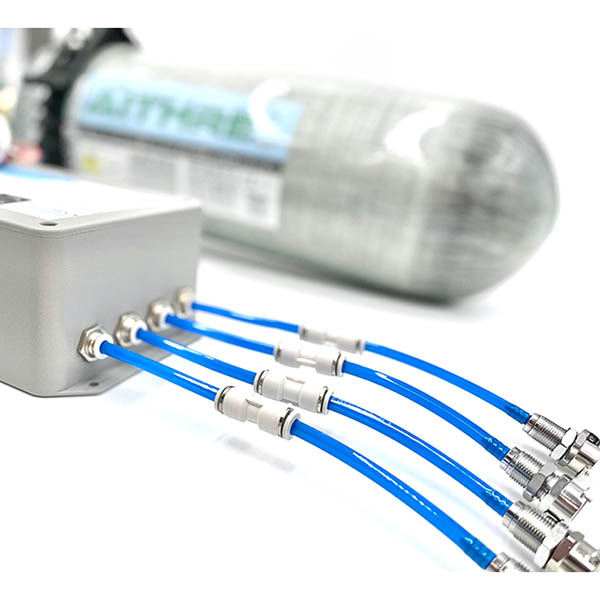 Other important features are EFIS output for compatible avionics, a push button remote on/off button, a built-in wireless Altus pressure gauge, in-app respiration rate and flow rate monitoring, and auto oxygen on/off settings based on measurements of oximetry, heart rate, carbon monoxide, and pressure altitude. Additionally, the emergency mode with higher flow rates equivalent to 12.5 LPM starts automatically when using the app and when your Aithre Illyrian measured oximeter reading drops below 85%, Aithre Shield carbon monoxide levels exceed 50 PPM, or pressure altitude of 18k MSL is reached. MORE PERMANENT SEMI-BUILT-IN SYSTEM For experimental aircraft, the AVI64EX is designed as a a more permanent semi-built-in oxygen system. We coined the term semi-built-in to describe our oxygen systems because the plumbing is hidden while the bottle is accessible and removable. This is an improvement of the fully-built-in systems because the bottles are easier to fill at small FBOs or to remove when not needed, yet the install is clean, tidy, and professional. The AVI64EX move closer to being a fully-built-in system because the control box is ship powered 12V and intended for mounting behind a bulkhead or panel. However, as with our other semi-built-in systems, the bottle remains accessible and removable in a baggage compartment with just a few quick release connections. For those who truly still want a fully-built-in system, a Mountain High remote fill port is available as an upgrade. ALL INCLUSIVE The AVI64EX system provides everything you need to have a built-in smart oxygen system for 4-place: oxygen bottle and regulator, control unit, plumbing, mounts, cannulas, fittings, iOS app, and control button indicator. FOUR PLACE The AVI64EX includes four quick cannula connects for the pilot and 3 passengers. Each place includes an independent smart pulse circuit. Four 100% silicone soft cannulas ensure the total comfort of you and your passenger without any stiffness - even maintaining supreme flexibility at low temperatures. SMART PULSE Smart pulse system is the first ever to base pulsed oxygen on optical flow measurements. This technology provides enhanced inhalation detection plus provides real-time flow rate determinations and accurate respiration rate feedback. What makes the system smart is the integration with the Aithre Connect iOS/WatchOS app with in-app control of oxygen and dynamic pulse duration based on respiration rate and pressure altitude. Simply plug in your cannula, push the button, and oxygen will begin pulsing. The AVI64EX works without the Aithre Connect app, but the savings is less because the AVI64EX operates at the 18k MSL pressure level without the app. By using the Aithre Connect app, the AVI64EX automatically titrates the oxygen delivery amount based on pressure altitude and provides for further user customization and emergency overrides. Further, with the Aithre Illyrian oximeter, the app allows the pilot to scale down the total oxygen delivery amount to squeeze every drop of useful oxygen out of the system without compromising safety. MICRO BURST TECHNOLOGY The AVI64EX delivers each pulse of oxygen as a series of micro bursts with each inhalation. The micro bursts start immediately upon inhalation and extend over the the first critical portion of the inhalation cycle. The number and spacing of the microbursts are adjusted in real-time and customized for each inhalation based on respiration length, pressure altitude, and other factors. The benefits of microbursts over a single pulse is that the oxygen is infused over the course of inhalation making the delivery smoother and more efficient. PUSH BUTTON The Aithre AVI64EX includes a panel O2 button hardwired to the remote control box to permit turning the oxygen flow on and off. When the O2 button is pushed, the AVI64EX comes to life and delivers oxygen. Oxygen can be discontinued at anytime by pushing the O2 button again to the off position. The oxygen can be safely turned off with the AVI64EX connected over long periods without substantial leakage. IN-APP RESPIRATION AND FLOW MONITORING Respiration rate and flow information is updated about every 12 seconds in the Aithre Connect app, providing near-real-time snapshots of your breathing rate and the volume of oxygen being delivered. This additional information improves and replaces the physical inline flow meter that has traditionally been part of oxygen systems. And, the AVI64EX can detect when a cannula has been disconnected or kinked because of the absence of respiration. The app will alert you of the start and stop of oxygen and, when no respiration is detected on the pilot port, the AVI64EX will sound an on-unit buzzer and turn the button light off. AUTO MODE SETTINGS The iOS auto mode settings of the Aithre Connect app are options that permit you to define when the oxygen should begin and end. There are four options currently: pressure altitude, heart rate, SPO2, and carbon monoxide. Each option has a slider bar that allows you to set when the oxygen should start and then a touchable switch that enables or disables the setting. Any or all of the parameters can be defined so that whenever one of the variables is triggered, the oxygen will start automatically. For instance, pressure altitude can be set to 10k, SPO2 can be set to 92%, carbon monoxide can be set to 5 PPM, and heart rate can be defined as 100 bpm. If any of these parameters occur, then the oxygen will turn on. Conversely, if none of the parameters are met then the oxygen is off, but oxygen will always occur over 10k MSL while in auto mode. The heart rate is interesting because oxygen use is demonstrated to reduce your heart rate and we are observing the ability to impose resistance to heart rate surges during stressful parts of flight. The oxygen during carbon monoxide exposure will not prevent carbon monoxide poisoning, but may improve your odds of being able to remedy an exposure problem. USER SELECTION O