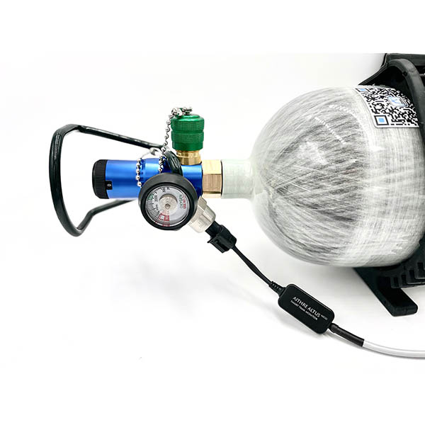 The Altus AVI64EX and 925L Aithre carbon fiber bottle is the first experimental installed smart oxygen system that is integrated with your avionics, your iOS device, and the Aithre suite of health technology products to deliver smart pulsed oxygen. You get a lighter bottle with a pulsed delivery system that factors pressure altitude, respiration rate, and custom user parameters to extend oxygen duration by more than 4X. This lightweight system offers incredible duration. At 14 lbs. total weight and 2000 PSI, we are demonstrating over 40 hours of endurance at 14k MSL with the 100% standard setting, which time can be extended more using the Aithre Illyrian oximeter.