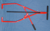 I should point out that the tow bar shown in the picture is not the one needed for the PA-28R-200. The actual tow bar I received has a metal dowel rod attached to one of the tow bars arms that slides thru a hollow axle on the front wheel. A very clever design!