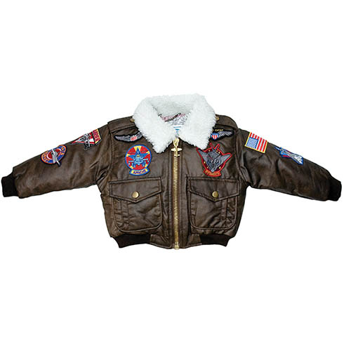 These are a Flightline original. They're a reproduction of a classic bomber, complete with simulated fleece collar. They are sturdily made with many special touches that make it unique, such as an airplane zipper pull, authentic aviation patches, knit cuffs & waistband, epaulets and a colorful graphic map liner. |