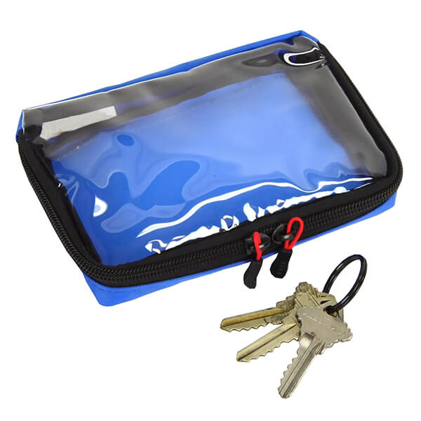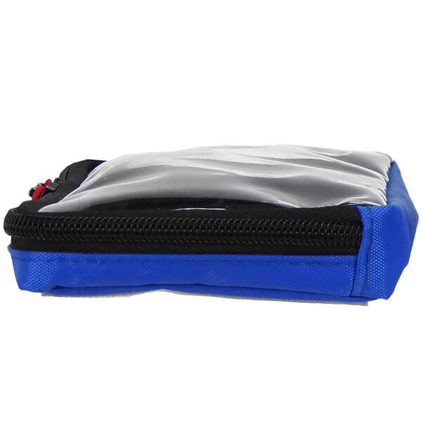 This is the larger-size of the ARRAY pouches. 6 inches long, 4 inches wide, and about 1 inch deep. It has a transparent lid to make it easy to see what's inside. The BLUE color helps you quickly differentiate between your different sized pouches. A zipper with a red cord pull goes around three sides for access. The outside bottom is covered with Hook Velcro which allows you to attach it to the FLEX ARRAY BASE PLATE. |