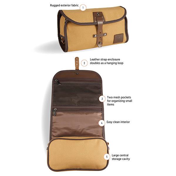 The Bush Pilot Dopp Kit was designed for anyone with an adventurous spirit, and is equally functional and stylish enough to use in your bathroom at the Ritz-Carlton or to hang from a wing strut while camping. |