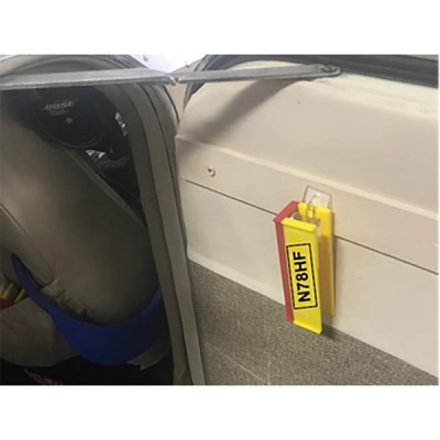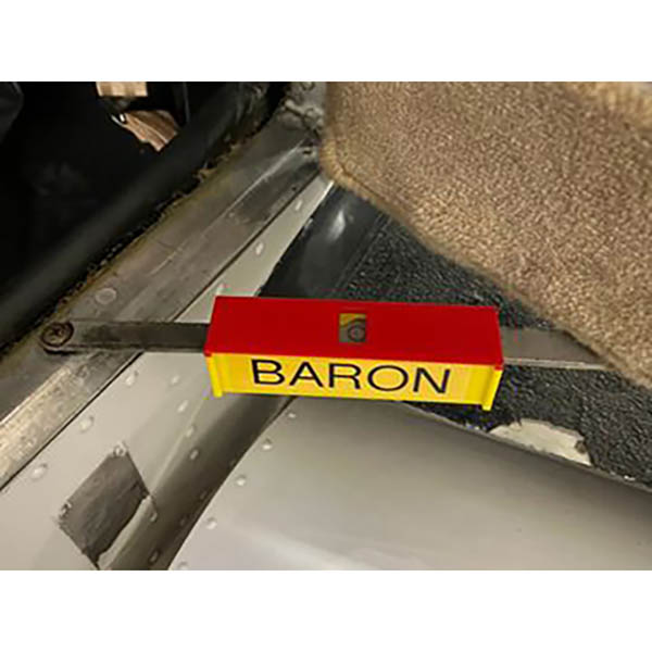 Note: Baron / A36 version has extra cut out for flange clip. The simple, clever, affordable solution to hinged cargo doors that just won’t stay open – until now. The magnetic underside grips firmly to your cargo door arm, but pops off with a quick tap. Then it can be stowed for easy access with the built-in hook hole (or just slipped into the seat back pocket). |