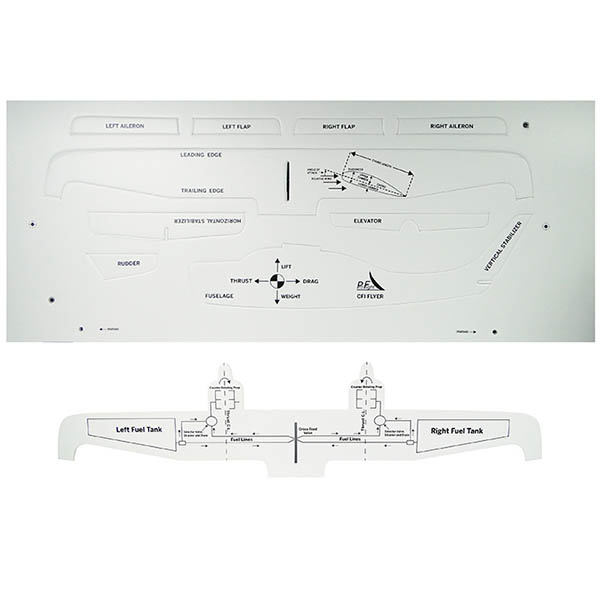 The CFI-Flyer is an instructional model for CFI's and Ground Instructors. Made from a renewable resource, your wooden CFI-Flyer will provide years of service, giving you the ability to demonstrate control surface input to flight regime outcome. It has fully moveable control surfaces and can be assembled in a matter of minutes. Featuring two separate wind styles, it can be modelled as either a single or twin engine aircraft. |