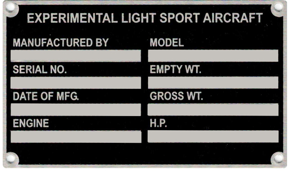 Custom data plate engraving for your experimental aircraft. Once you place your order, you will receive a fully engraved data plate ready to install on your aircraft for certification. It is highly recommended that you use Capital Letters as they work best for the engraving boxes. Your data plate will be engraved exactly as you enter the information, so please check your work. If you want a field to be left blank, please put "leave blank" in the data field. Dimensions: Height: 3" Length: 4" Thickness: 1/2" |
