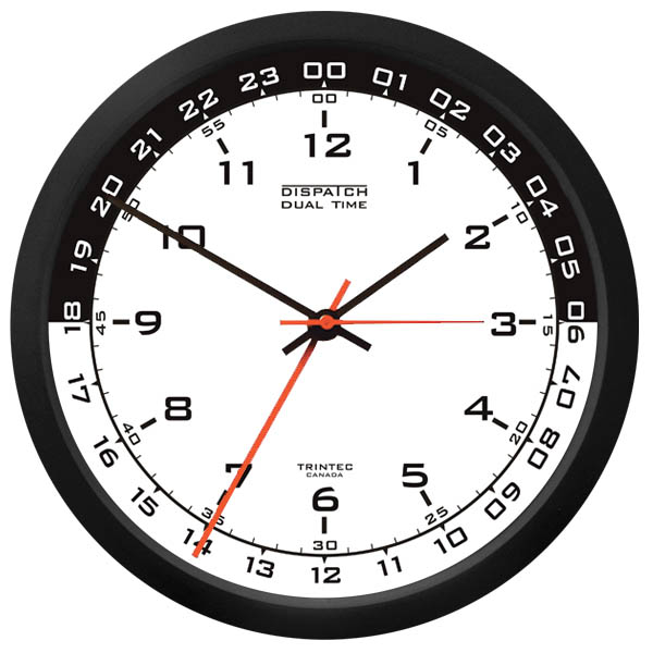 Two separate hour hands can be set independently. The 12 hour hand indicates local time. The (red) 24 hour hand can be set to indicate local 24 hour time, Zulu, GMT or UTC time. |