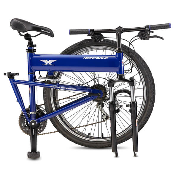Like all Montagues, the Paratrooper Express is designed to fold and fit anywhere. With front suspension and semi-knobby tires, the Express is at home on and off-road. It makes for the perfect light trail bike or rugged commuter.