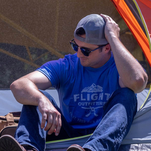 Whether your adventure takes you to the mountains, the sea, or both, you’ll look good getting there in the Flight Outfitters Mountain Range T. “Super Soft” 50/50 blend. |