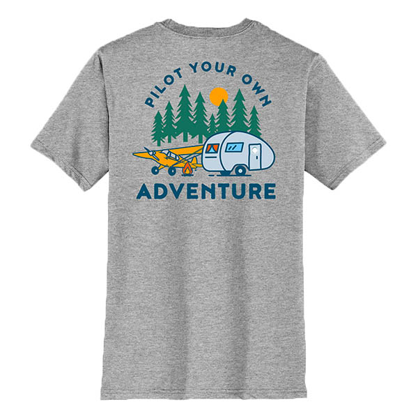 | If you enjoy flying your Cub to meet up with buddies who drove their teardrop camper to a remote campsite, this shirt is for you. Inspired by the PYOA AirVenture Contest, which combines two of our loves – aviation and camping. Flight Outfitters logo on front chest. |