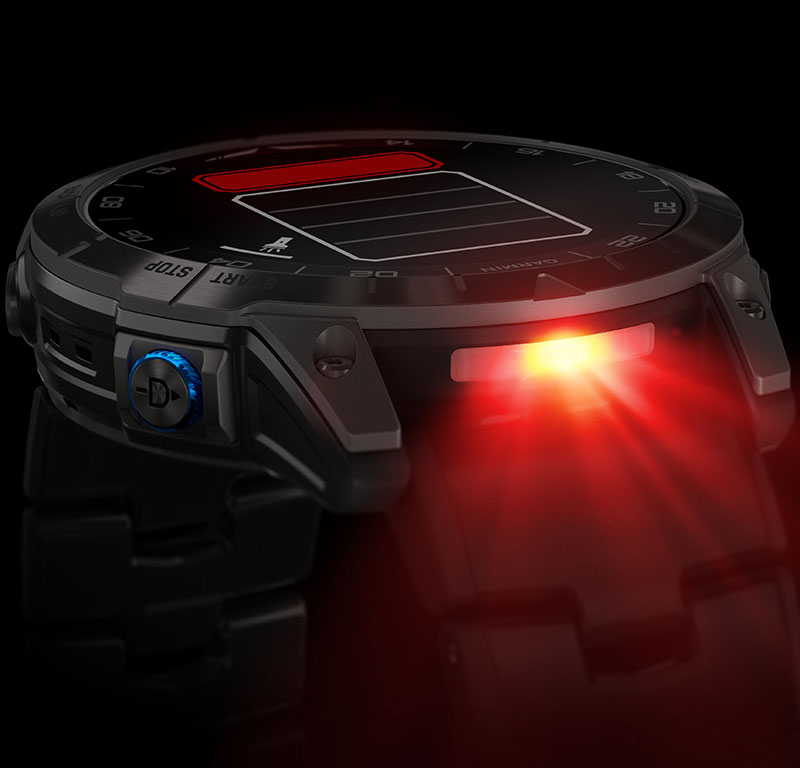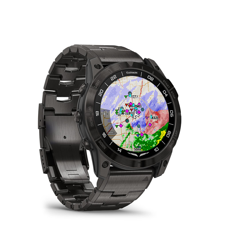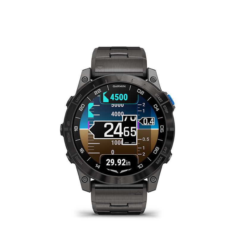 Be ready for takeoff, day or night. This premium smartwatch has a built-in flashlight, superbright AMOLED display and advanced tools for flying and fitness.