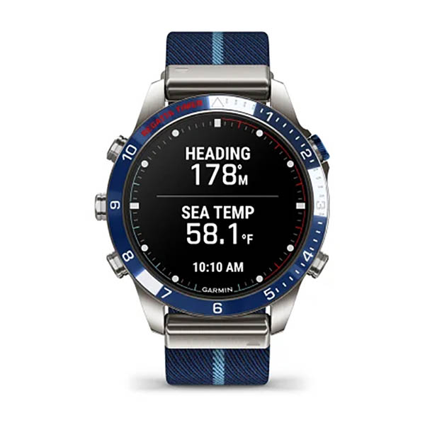 MARQ® Captain the quest for excellence has reached new waters. You Explore uncharted territories. Push boundaries and break limits. You demand the finest. You want a modern tool watch that reflects your passion for adventure. Uncompromising by Design: Built for living life at the helm, this luxury modern tool watch features a race-inspired striped jacquard-weave nylon strap and a stunning AMOLED touchscreen display with traditional button controls. The 46 mm case is made of Grade-5 titanium for an ultradurable design. Battery Life: Get incredible battery performance to keep up with your expeditions, with a rechargeable lithium battery that lasts up to 16 days with gesture and up to 6 days in always-on mode Regatta Timer: Pinpoint starts with a countdown timer that shows time to the gun, while GPS time to burn calculates your ideal position. Stream Data:View data — including water depth, engine RPM, wind, custom data and more — directly on your wrist when you connect your MARQ Captain tool watch to your boat’s compatible devices. Man Overboard: Mark a man overboard with a single press. A directional arrow and distance countdown help execute a swift recovery. Autopilot Control: Even when you’re not at the helm, you can control your boat. Access the autopilot app to change heading, engage pattern steering and follow a GPS route. Fusion-Link Audio System: Control your onboard entertainment system from your watch with the built-in Fusion-Link™ Lite app. Comprehensive Connectivity: MARQ Captain connects with select compatible Garmin chartplotters and remote control of key MFD features, including chart zoom, layout shortcut, Fusion® stereo, autopilot and more. Waypoint Marking: No need to return to the helm to mark each catch; use your watch to place chartplotter waypoints from anywhere on the boat. Garmin Sailassist Feature Capabilities: When it comes to sailing, don’t just time your start — visualize it. Create a virtual starting line to time the perfect start. Also, use tack assist to see whether you are headed or lifted. Alerts and Alarms: For better situational awareness on the water, the MARQ Captain tool watch alerts you to imminent tide changes and anchor drag. Tack Assist: Hone your tactics with sailing features when paired with a compatible smartphone, including tack assist — so you stay on top of wind direction Jet Lag Advisor: Help minimize the effects of jet lag with guidance on light exposure, sleep schedule and exercise on your next long-distance trip. Enter your travel details in the Garmin Connect™ smartphone app calendar, and track how your body clock is adjusting to your new destination. Morning Report: Receive an overview of your sleep, recovery and training outlook as soon as you wake up — alongside HRV status, training readiness and weather. You can even customize your report to show what you want to see Wrist-Based Heart Rate: The watch constantly samples your heart rate2, and will alert you if it stays too high or too low while you’re at rest. It also helps gauge how hard you work during activities — even while swimming. Health Snapshot Feature: Log a 2-minute session to record key stats, including heart rate, heart rate variability, Pulse Ox1, respiration and stress. Then generate a report with those stats to share via the Garmin Connect app on your compatible smartphone Sleep Score and Advanced Sleep Monitoring: Get a full breakdown of your light, deep and REM sleep stages2. View it all on a dedicated widget that includes your sleep score and insights. Body Battery Energy Monitoring: Optimize your body’s energy reserves by using heart rate variability, stress, sleep and other data to gauge when you’re ready to be active or when you may need to rest. Stress Tracking: Heart rate variability is used to calculate your stress level score, so you can see if you’re having a calm, balanced or stressful day. Sports Apps: Use preloaded activity profiles for trail running, swimming, running, biking, hiking, rowing, skiing, golfing, surfing, indoor climbing and more. Training Readiness: From the moment you wake up, get a readiness score based on your sleep quality, recovery, training load and more, so you can determine whether it’s a good day to go hard — or take it easy. HRV Status: Gain a deeper understanding of your overall health, training and recovery through heart rate variability while you sleep1, based on technology developed by our Firstbeat Analytics™ team. Training Status: Using new indicators such as HRV status, your recent exercise history and performance, get an easy insight into your overall effort — and whether you’re training productively, peaking or strained. Wrist-Based Running Dynamics: This smartwatch measures crucial running metrics such as cadence, stride length, ground contact time and more. Animated Workouts: This watch features easy-to-follow, animated cardio, strength, yoga and Pilates workouts you can view on the watch screen. Choose from preloaded animated workouts, or download more from the Garmin Connect™ online community when paired with your compatible device. Garmin Coach: These free adaptive training plans feature guidance from expert coaches and adapt to you and your goals. Workouts sync right to your watch from Garmin Connect. Visual Race Predictor: Based on your running history and overall fitness level, get an estimate of what your pace could be for a 5K, 10K — or even a marathon. Plus, trend data highlights your training’s impact over time. PacePro Technology: A first-of-its-kind PacePro feature helps keep you on pace with grade-adjusted guidance as you run a course Grade-Adjusted Pace: Don’t run out of steam before the activity is over. Understand how to adjust your pace over varying terrain to perform according to your plan. VO2 Max: Train smarter with VO2 max, an indicator of how you can expect to perform. It adjusts for trail running and accounts for changes in performance that could be c