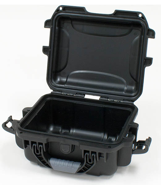 Black Waterproof Injection molded case, with interior dimensions of 8.4 x 6 x 3.7 inches. NO FOAM