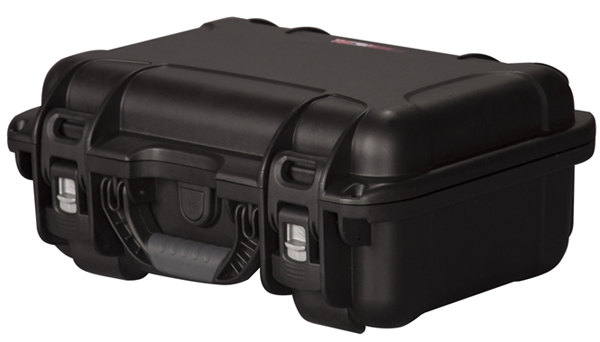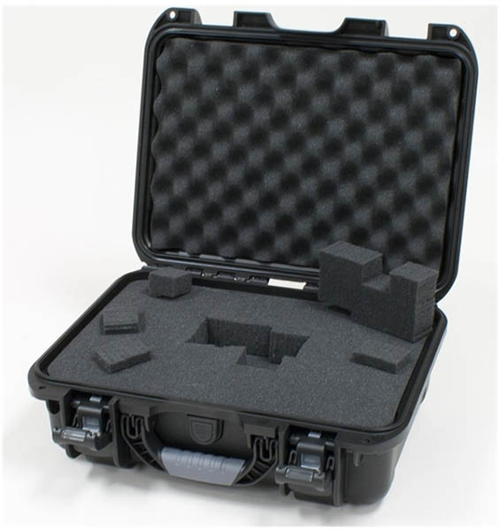 Black waterproof injection molded case with interior dimensions of 15" x 10.5" x 6.2".