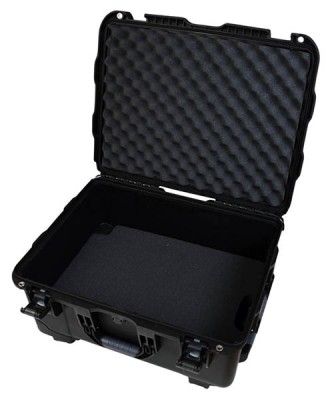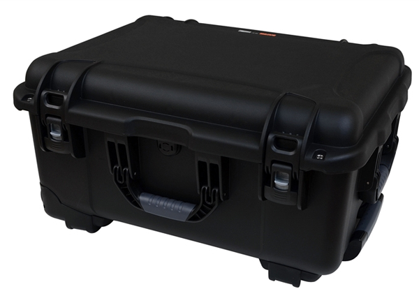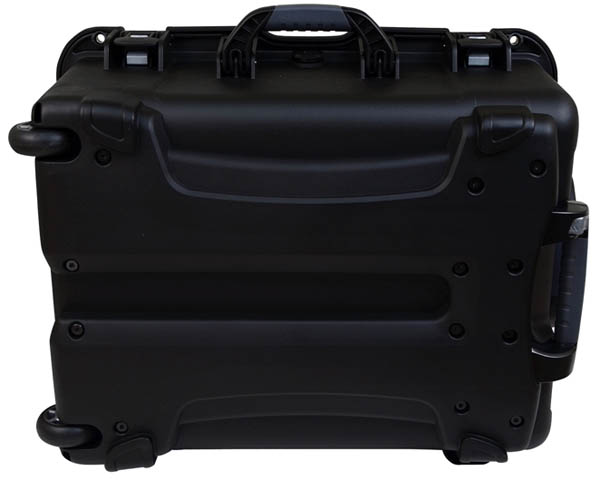 Black injection molded case with pullout handle and inline wheels. Interior dims 20.5" x 15.3" x 10.1".