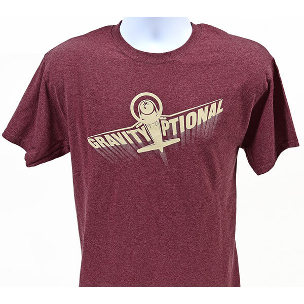 Gravity Optional T-Shirt Vintage Heather Maroon. Made from 50/50 Blend. (Polyester 50% Cotton 50%) |