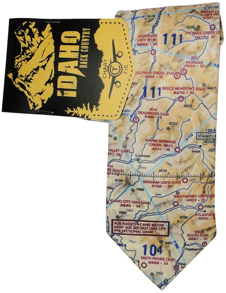 Pilots from all over the United States and the World dream of flying the Idaho strips. This slick tie showcases some of the best airstrips from Johnson Creek to Smiley Creek, and more. The ties looks great behind a suit. Hand Made 100% Polyester |
