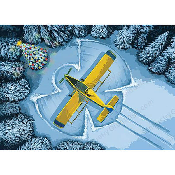 Ag Air Snow Angel Christmas Card is nestled among the trees for a winter break is a crop duster forming a beautiful holiday snow angel. The yellow air tractor style plane is ready at a moments notice to pilot wherever a good job is needed to be done. Agricultural and farm customers will smile with holiday warmth when they know your ag aviation company paused to remember how important their business has been to you throughout the past year.