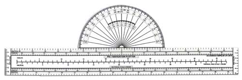 Jeppesen Plotters -- the most accurate way to get there and back. Choose from Navigaton plotters, Enroute plotters, Rotating Azimuths and others. The classic opaque background allows easy identification of WAC and Sectional chart scales. The laminated design protects visibility of printed scales for years to come. The dual scales are calibrated in statute and nautical miles. Size: 12-1/4 x 4 inches. |