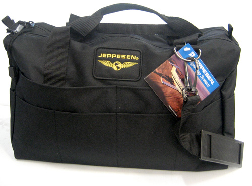 A great multi-purpose bag for the student pilot or mechanic. Features include: seven exterior pockets, three small exterior pockets for pens or small flashlights, an interior key clip, removable shoulder strap, double zipper opening, and reinforced base. Each non-padded bag is made from polymer with a PVC coating on one side for added water resistance, strength, abrasion resistance, and durability. Size: 11"H x 5.5"W x 16"L (Black only) |