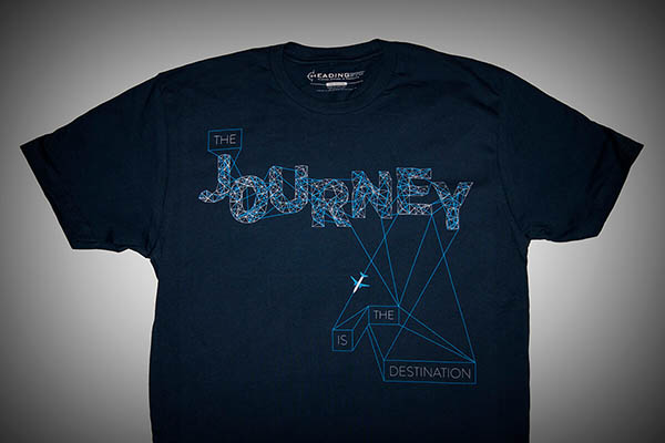 "The Journey" tee portrays this message by showing the flight path of an airplane forming this very phrase. On the back, is the Heading 370 logo accenting the design on the front. This design is printed on an indigo color, 100% cotton shirt providing a high quality soft feel. Sizes: S-XXL We highly recommend washing inside out and hang drying to prolong the shirt life! (Do your tee a favor) |