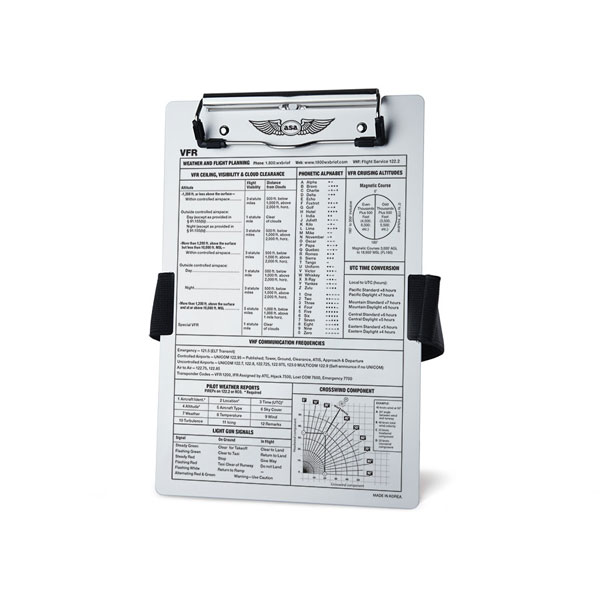 This durable brushed aluminum kneeboard is a great way to organize your flight data, providing a strong surface for inflight note taking as well as quick access to important VFR information in the form of a permanent placard. |