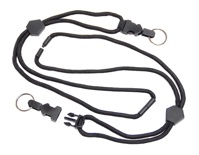 Black lanyard with break away ring, measures 20". |
