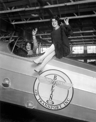 Women waving from Boeing 40A Mail Plane Photograph Poster. 4x6 Postcard |