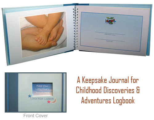 The Little Pilot Logbook is the perfect gift for the aviation enthusiast. Record treasured stories and precious favorites, display adorable pictures and store mementos in this spiral bound 8.75" x 5.75" hard cover book that lays flat for easy entry and portable enough to carry with our on your next journey. This keepsake will be treasured not only by the parent but also by the future aviator that receives it as a record of childhood memories of flight. Flight Log Log time just like the real pilots but with a few extras that includes child's age and space to record special flight moments Favorites Page Capture your child's all time favorites including favorite on-board game to favorite airport in this special travel journal Journal Pages Record child's first flight, capture special memories and much much more... Photo Page Aeronautically framed pages to display pictures and postcards from your trip Mementos Pocket Mementos Pocket is wonderful for keeping your child's commercial airline ticket stubs, pictures and much more in |