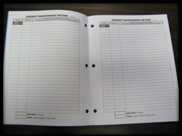 Single Airframe Logbook. Standard Layout spacing allows for organized handwritten entries. Large Pages Allow for multiple entries per page. Pre-punched for easy 3 Ring Organizing. |