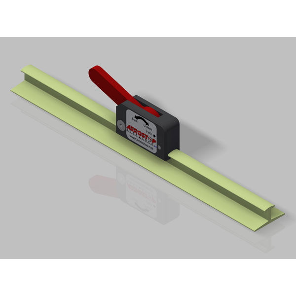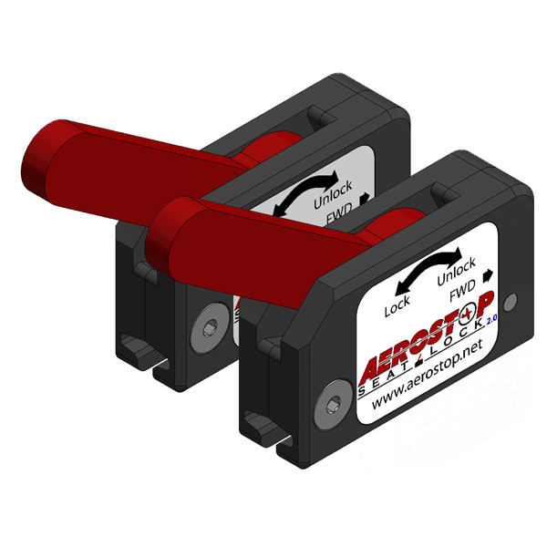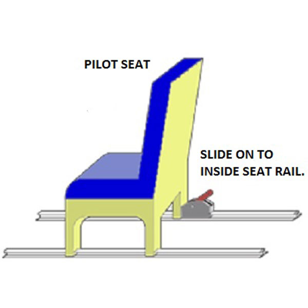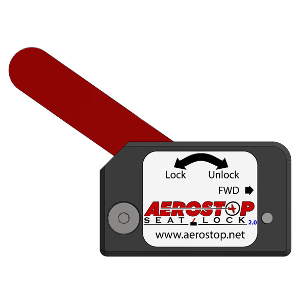 A unique cam style lock that locks in place when the handle is firmly pressed down and makes contact with the seat rails. Version 2.1 is fully adjustable to accommodate between different seat rail manufacturers, specifically Cessna and McFarlane. Adjustments are also useful when slight wear is experienced on seat rails. This product has been FAA-PMA approved.
