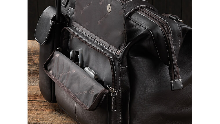 Ready for a true journey, the Gann is imbued with the same insatiable thirst for adventure as the novelist it is named for. Spacious but cabin-friendly, this carpenter-style bag is a great companion to the pilot who has everything — and likes to take it along. Write your own aviation adventure with our new line of flight bags named for storied aviation authors. This leather flight bag is handmade from full-grain, oiled South American cowhide in espresso brown with contrasting black leather pocket flaps. Uncoated for authentic look and wear, they will become more supple with age and use, while taking on a rich patina. Each hide has its own distinctive grain and markings, making each bag as unique as the pilot who owns it. While embracing the traditions of yesteryear, Lightspeed flight bags are also born of the same aviation focus we bring to our headsets and incorporate insightful features designed for the modern pilot, like purpose-built pockets for headsets, iPads, and transceivers, and rugged, but wing-friendly, textured PVC bottoms. Anyone who owns a Lightspeed headset will recognize the beauty, durability, and ingenuity of a product destined to make flying more enjoyable for years to come. Dimensions: 16"W x 6"D x 13.5"H |